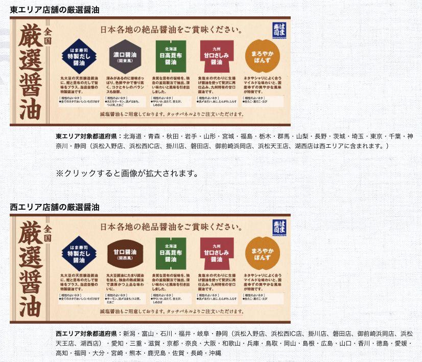 基本的にお寿司屋さんではしょうゆは1種類だけ用意されているところがほとんどですが、はま寿司では4種類のしょうゆが用意されています。